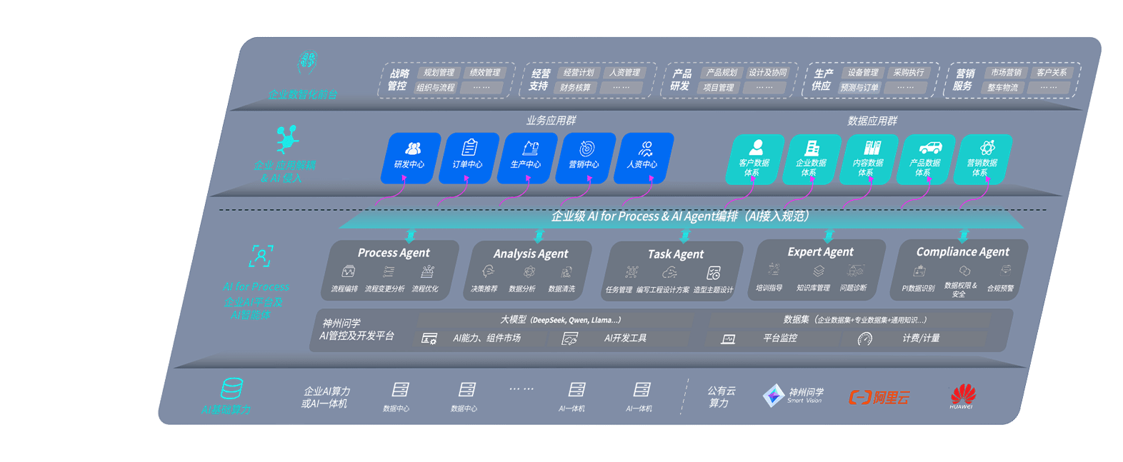 欧亚国际问学智车解决方案是一套基于AI技术的汽车行业智能化系统,,覆盖从底层算力到顶层AI应用的全栈方案。。方案由算力层、、、、模型层和应用层组成:算力层,,,方案支持多种一体机配置,,具备云端灵活部署、、、多云适配以及动态优化计算资源的能力;模型层,,,欧亚国际问学平台版提供了企业级AI应用一站式构建与管理平台,,,支持基于后训练强化技术的汽车企业专属模型的训练、、、评测和运营;应用层,,欧亚国际问学DeepSeek版提供包括超级员工、、、智能招采、、、智能营销、、、、智能客服、、、AI for BI等一系列解决方案,,可助力汽车行业实现数字化转型,,让管理更智能、、、、响应更敏捷。。。