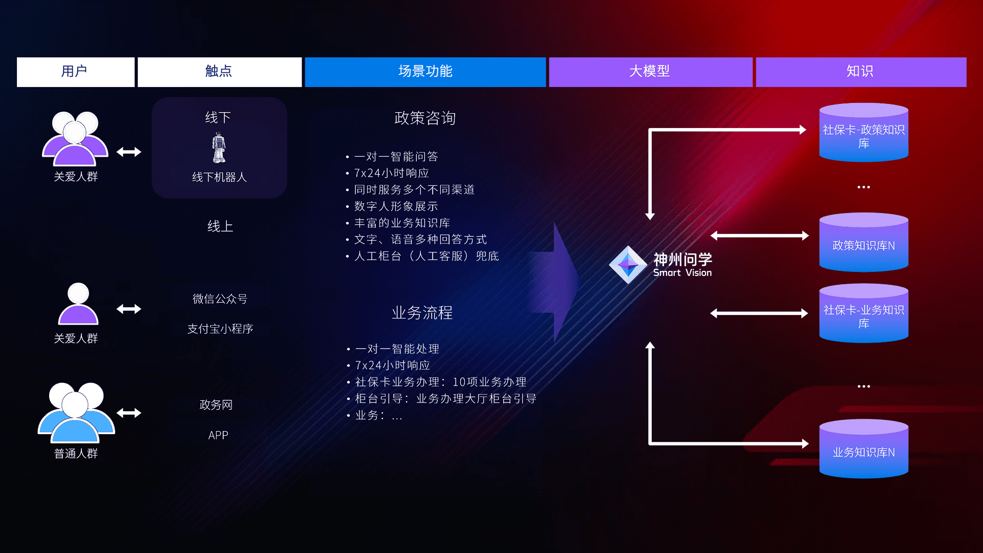 • 线上线下全覆盖:线上提供微信公众号、、支付宝小程序、、、、政务网、、app多种渠道,,,,与线下机器人形成完整服务体系。。